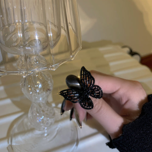 Dark Cool Girl Black Diamond Butterfly Ring SS2444
