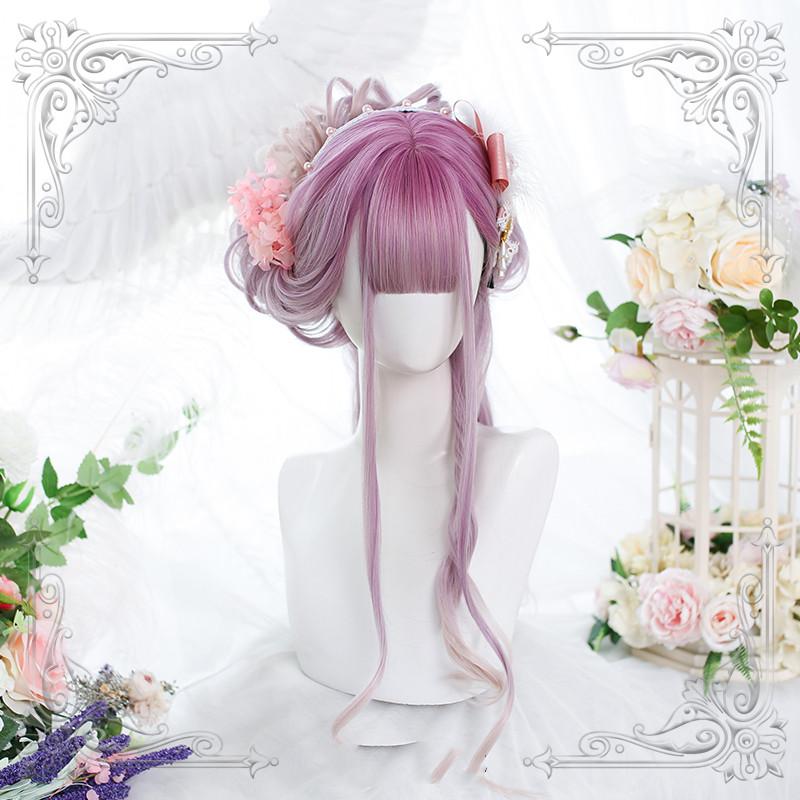 Harajuku Lolita Pink Purple Long Curly Wig WS1299