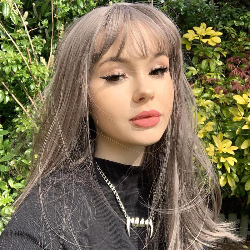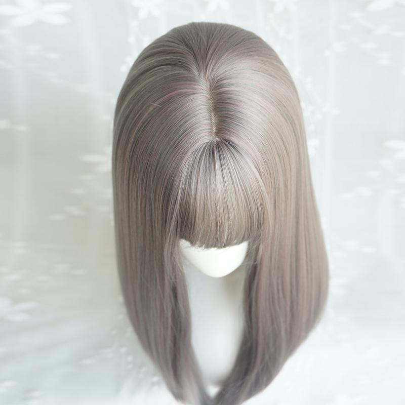 Harajuku Lolita Straight Grey Pink Wig WS1245