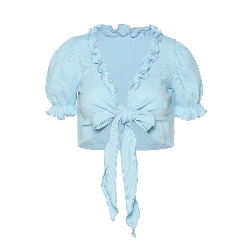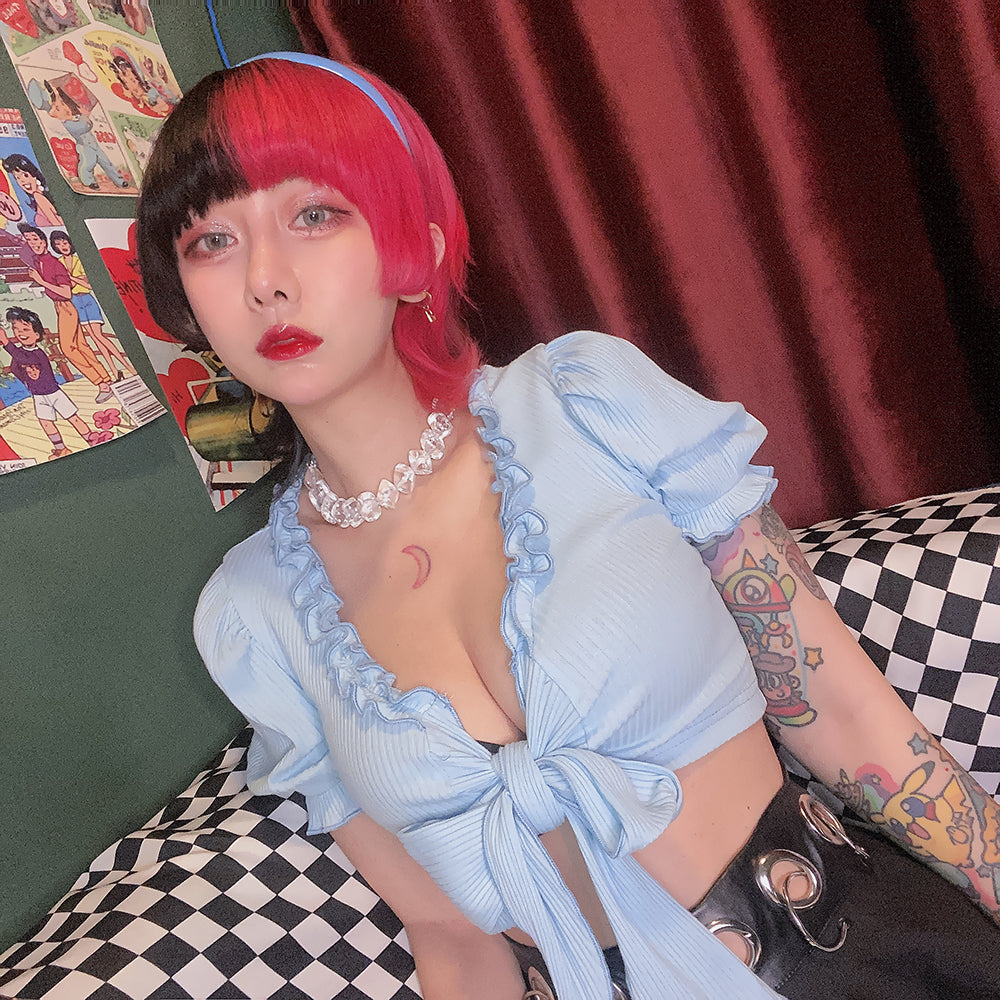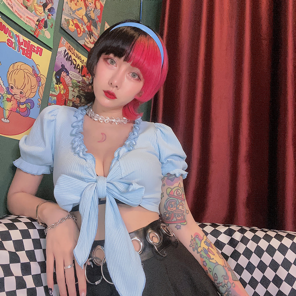 Hip Hop Bow Sweet Puff Sleeve Low Waist Top SS1217