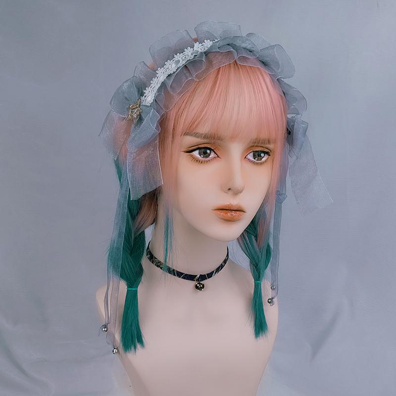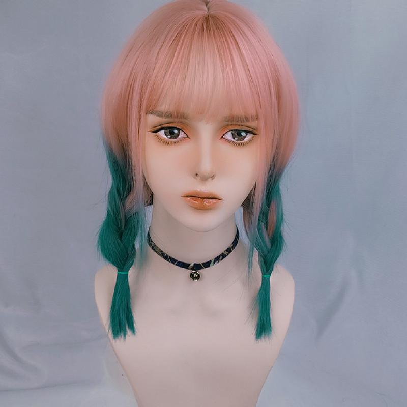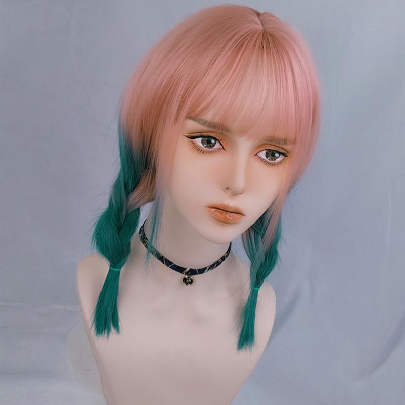 Lolita rose pink gradient green wig WS1225