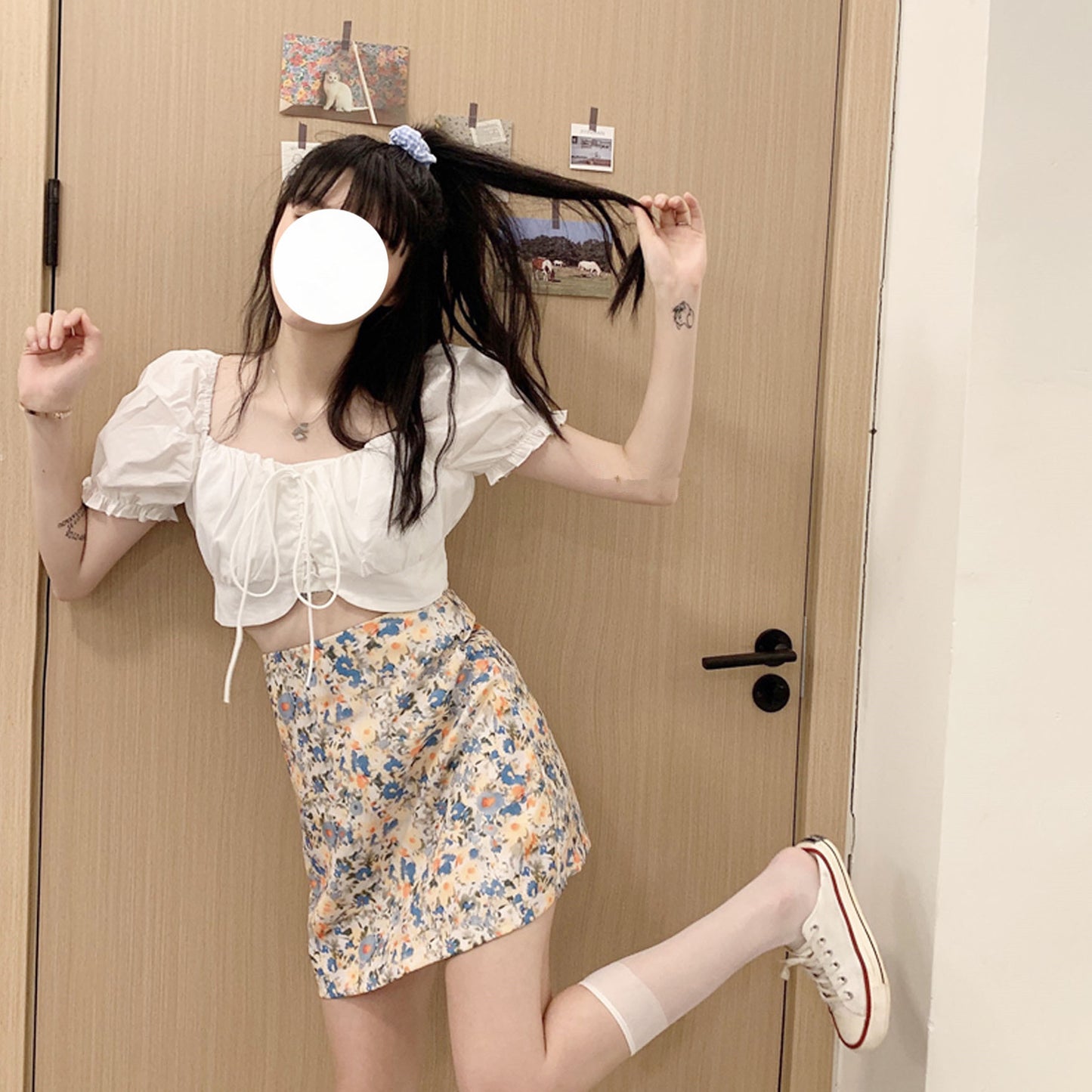 Puff sleeve shirt and retro oil painting bag hip skirt SS2315