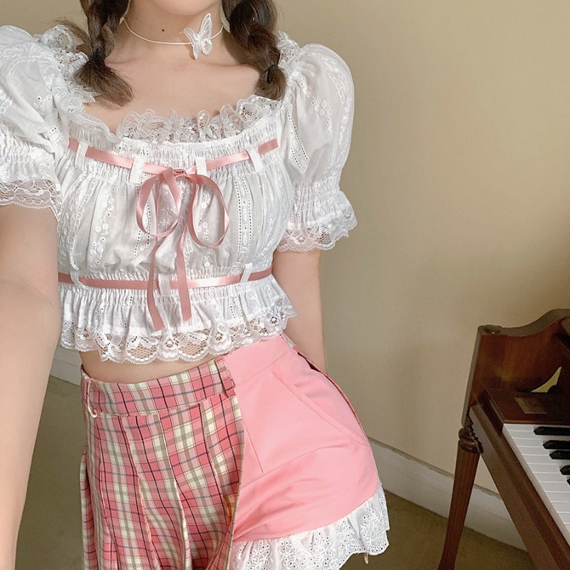 Chiffon Puff Sleeve Checked Shirt Dress SS2537
