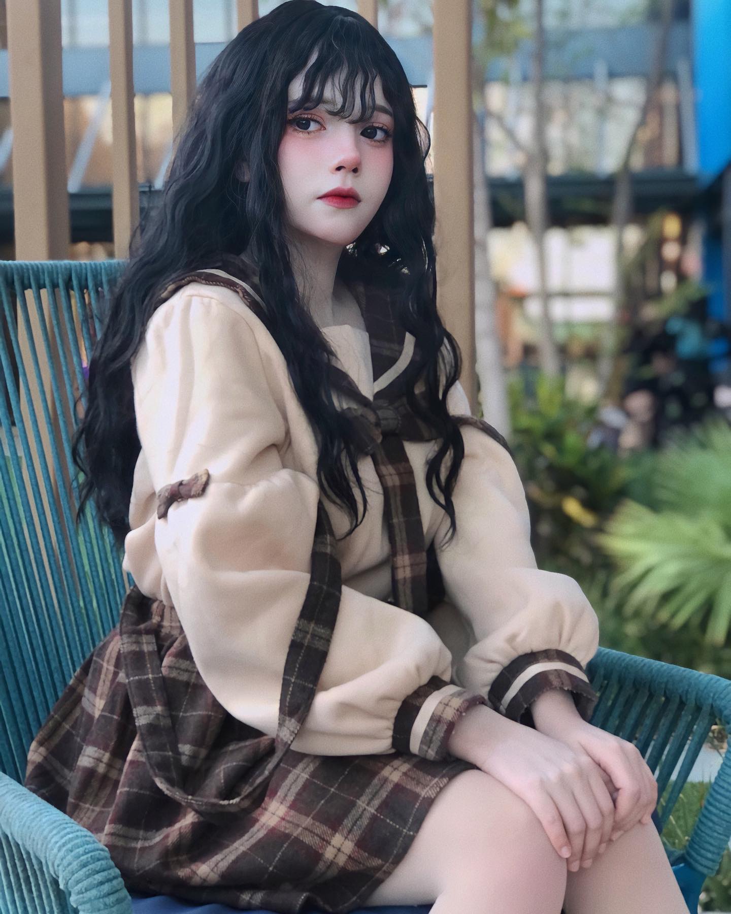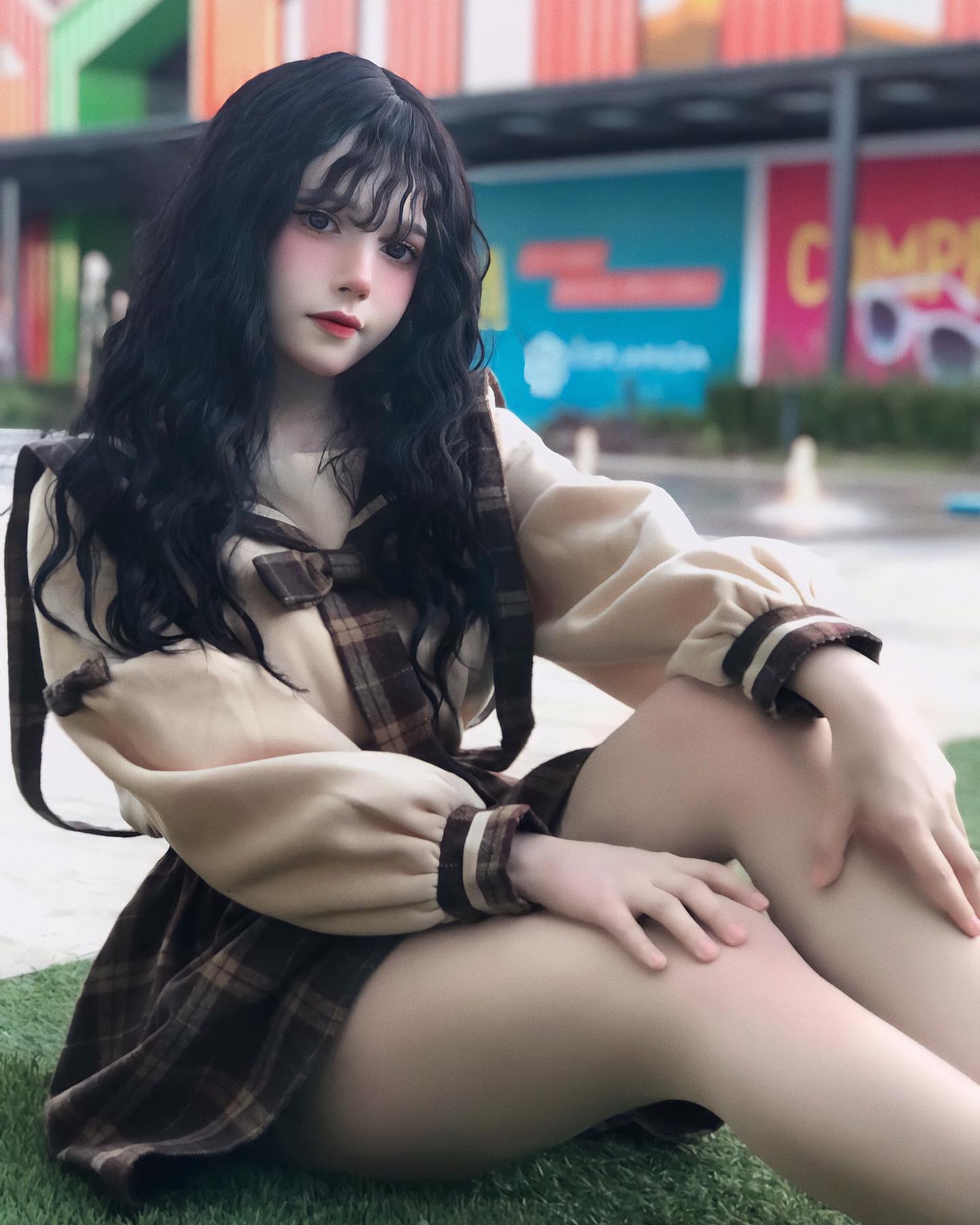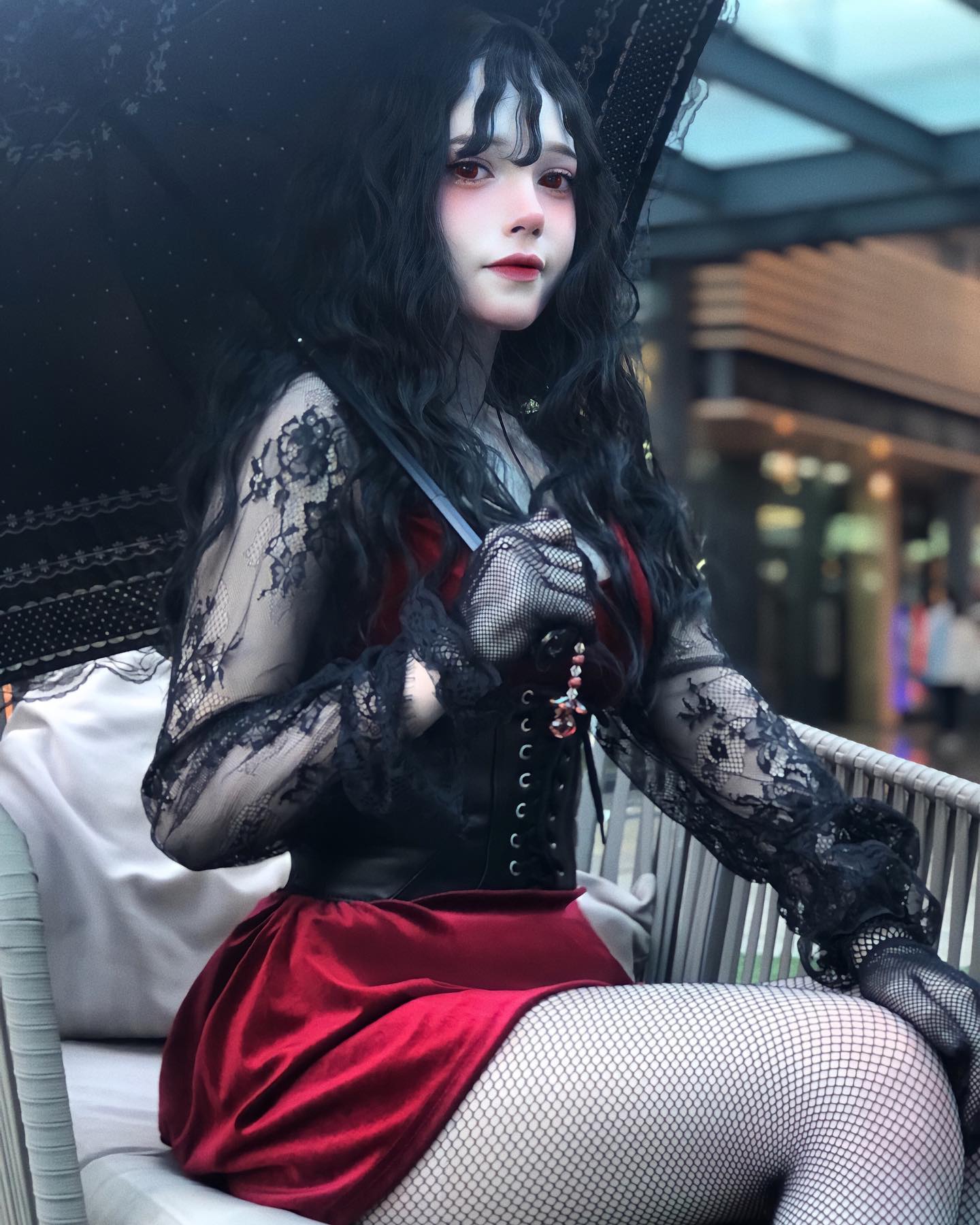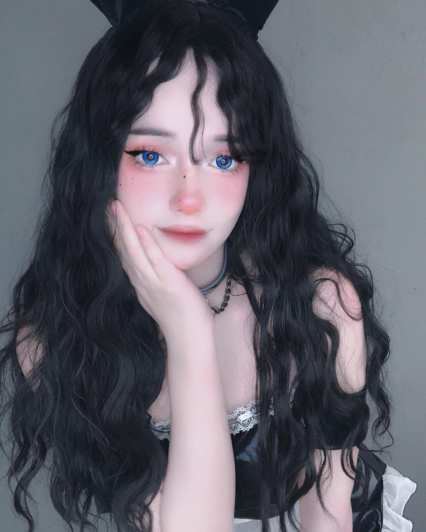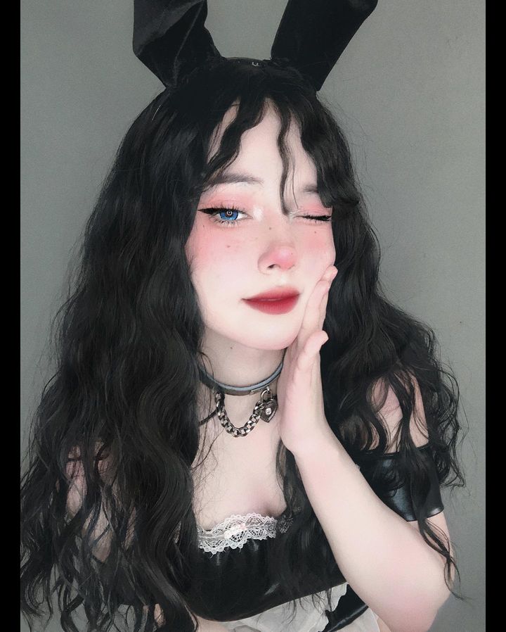 Lolita Black brown Long Wavy Curly Wig WS1058