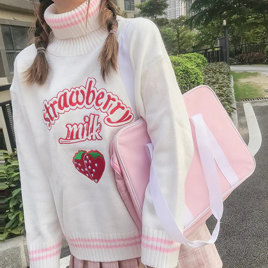 Pink Strawberry Turtleneck Loose Sweater SS2941
