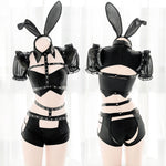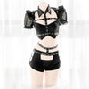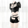 Suit£ºHair band + top + shorts + rivet belt + panties